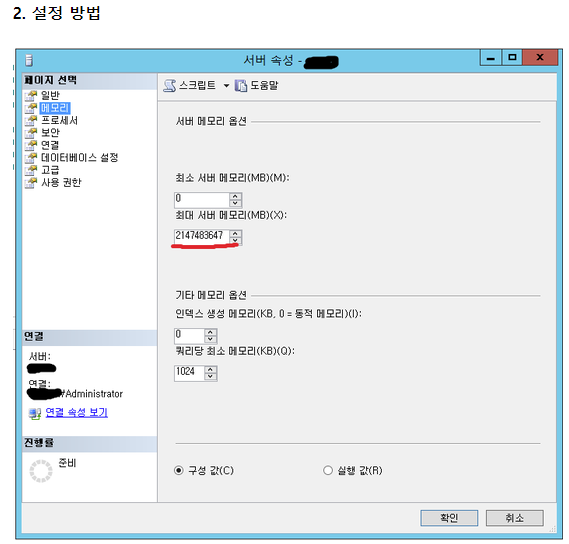 2016 버전은 확인하지 못 하였으나, 기존 고객사의 2016 하위 버전(2008R2) 에서 메모리 관련 내용으로 성능 이슈가 발생하여 관련 처리 내용을 처리한 내용입니다.